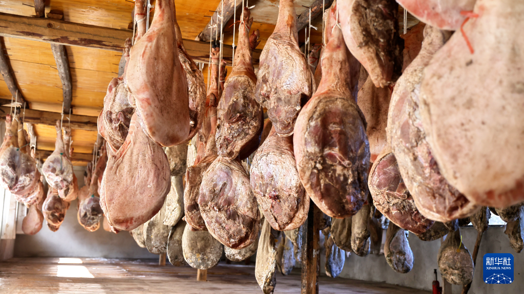 火腿代掛房里掛著的火腿。新華社發(李新平 攝)
