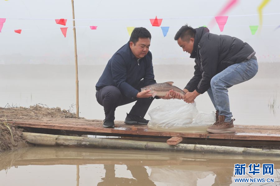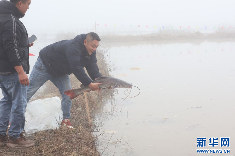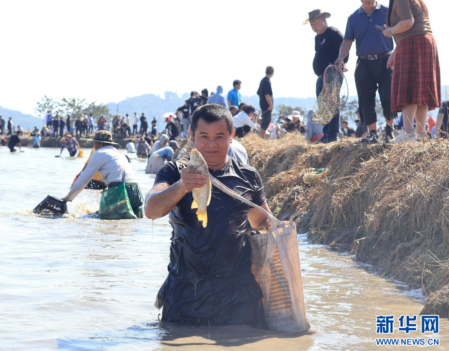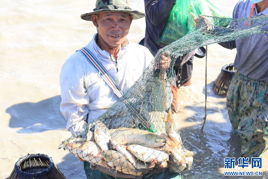 群眾抓魚(1月17日攝)。新華網發(勐遮鎮黨委供圖)