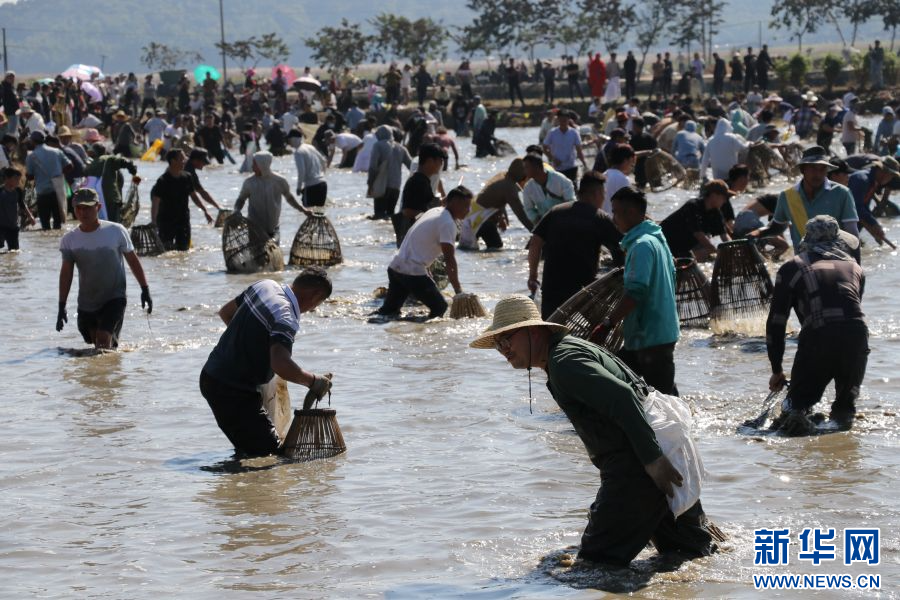 1月17日,勐遮鎮第十二屆“漁樂”文化節在云南省西雙版納傣族自治州勐??h舉行?;顒蝇F場,數千名群眾手持魚簍網兜,躍入水塘抓魚,歡笑聲此起彼伏。