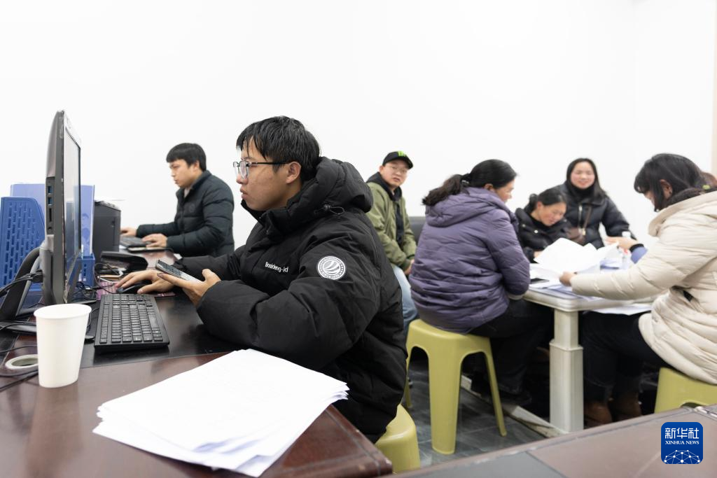 1月16日,工作人員在雄俊園小區黨群服務中心整理入住的受災村民信息。新華社記者 陳欣波 攝
