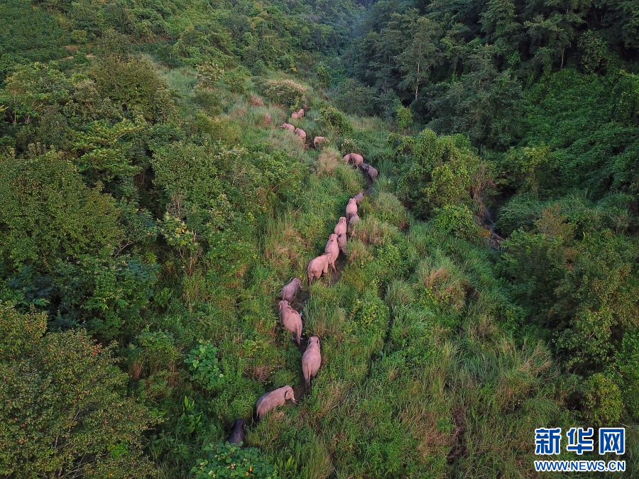 航拍下的亞洲象(資料圖)。新華網發(西雙版納州委宣傳部 供圖)