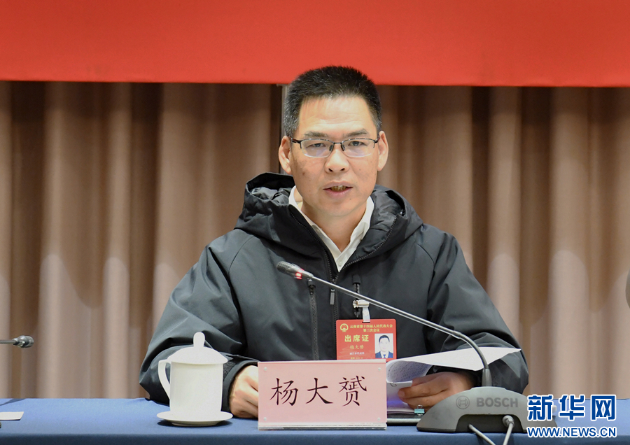 云南省人大代表,麗江市人大常委會黨組書記、主任候選人楊大赟在麗江市代表團全體會議上發言(1月19日攝)。新華網發(趙慶祖 攝)