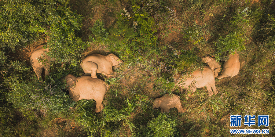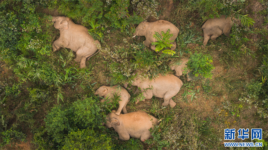 2021年“短鼻家族”在北上南歸途中“抱團”睡覺的經典畫面(資料圖)。新華網發(云南西雙版納國家級自然保護區管護局 供圖)