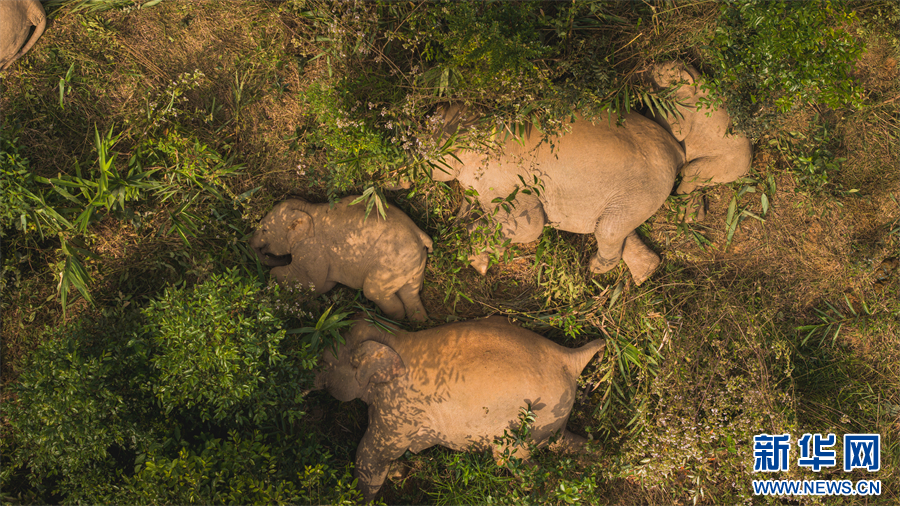 圖4:象群在景洪市大渡崗鄉大荒壩村民委員會附近林區睡覺畫面(1月10日攝)。新華網發(周晨浩 攝)