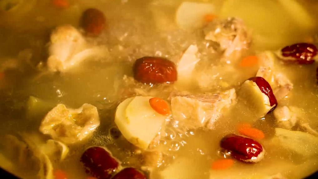 時值寒冬,正是需要溫補之時。云南省屏邊苗族自治縣的居民會以當地野生滇黃精和土雞為主料,配上昭通天麻、紅棗、枸杞、當歸等滋補食材,砂鍋慢燉,制作成滇黃精煮雞。隨著燉煮,雞湯逐漸變得金黃透亮,香氣撲鼻,一碗熱騰騰的雞湯下肚,溫暖瞬間傳遍全身,元氣滿滿。