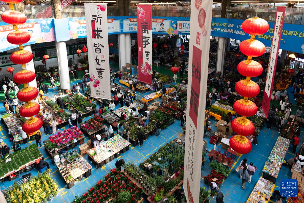 春節臨近,云南昆明斗南年宵花迎來銷售旺季。在昆明國際花卉拍賣交易中心內,一盆盆年宵花在臺車上整齊排列,買家們爭相競價,熱鬧非凡。斗南花卉市場線下交易區人頭攢動,市民和游客紛紛前來選購,為新春佳節增添喜慶氛圍。同時,各電商平臺上年宵花也熱銷不斷,企業積極備貨發貨,將美好祝福送至千家萬戶。