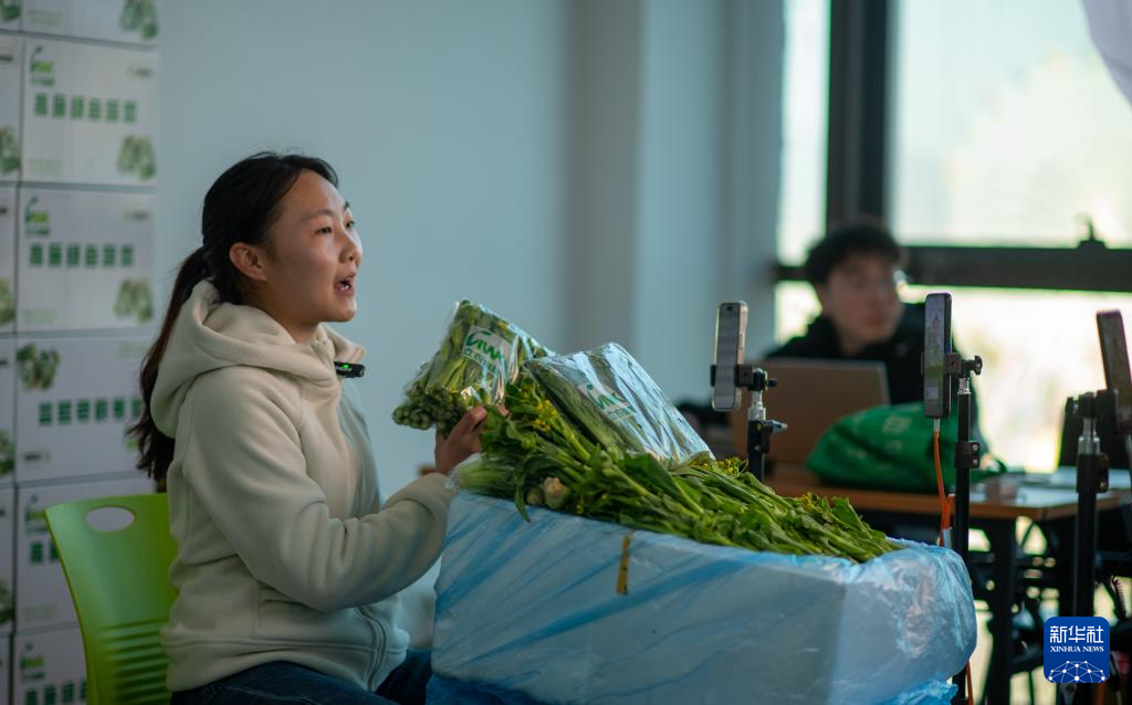 一名網絡主播在云南省曲靖市會澤縣電商直播產業園直播帶貨(1月21日攝)。