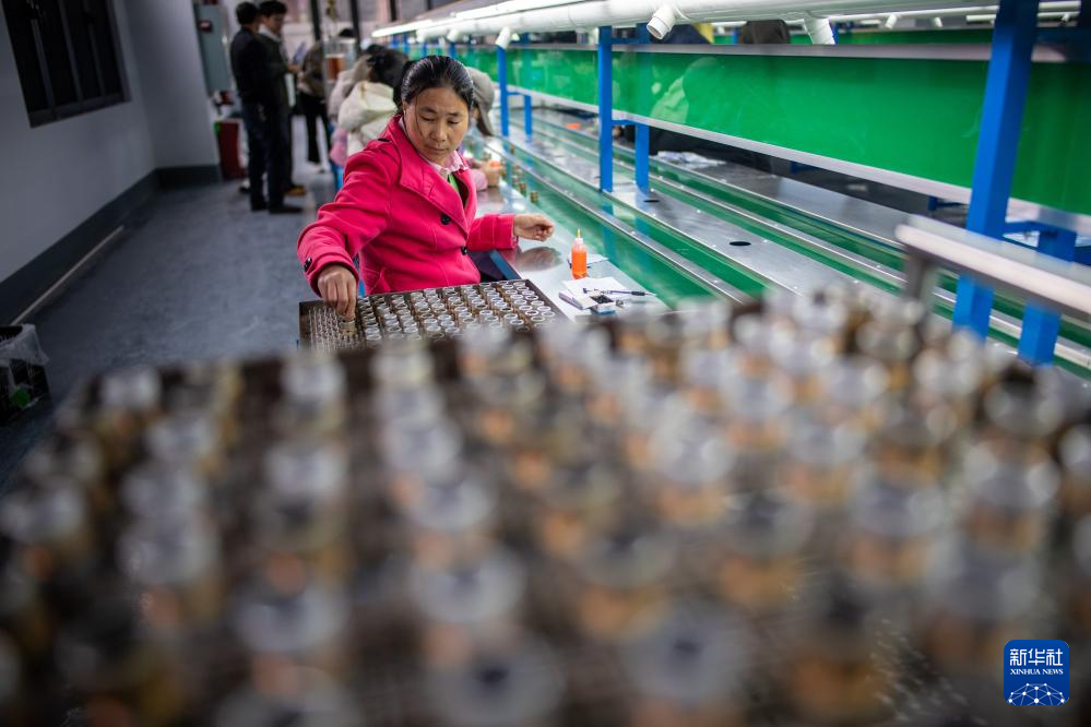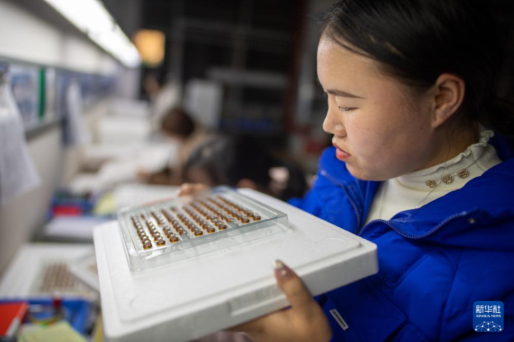 云南省曲靖市會澤縣鐘屏街道居民在家門口的電子廠上班(1月21日攝)。