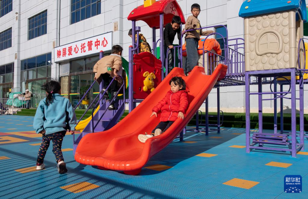云南省曲靖市會澤縣鐘屏街道務工人員子女在愛心托管中心玩耍(1月21日攝)。