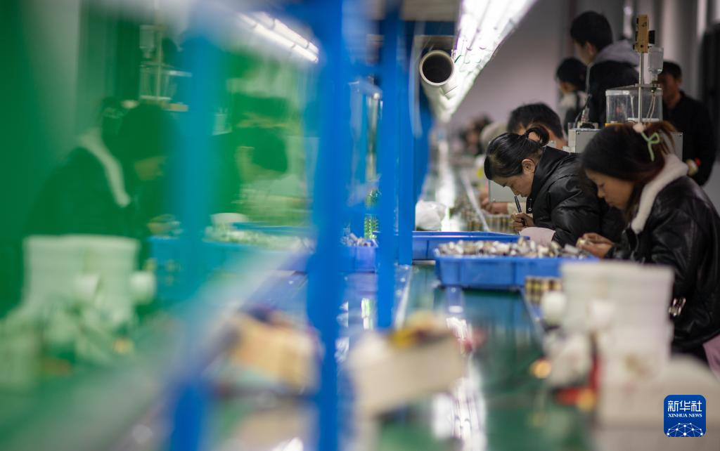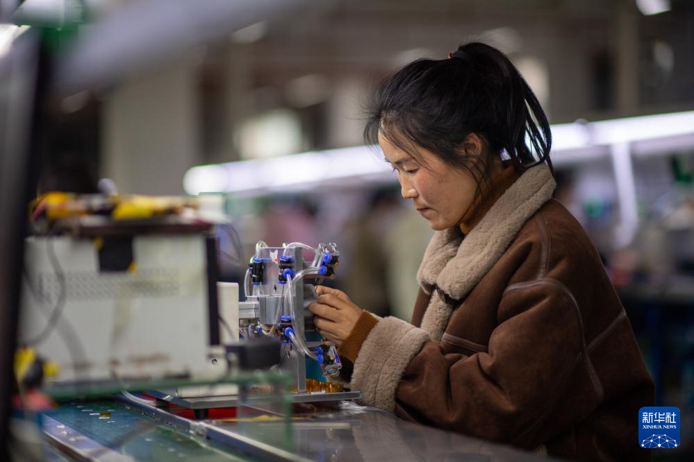 1月21日,云南省曲靖市會澤縣鐘屏街道居民在家門口的電子廠上班。(新華社記者 江文耀 攝)