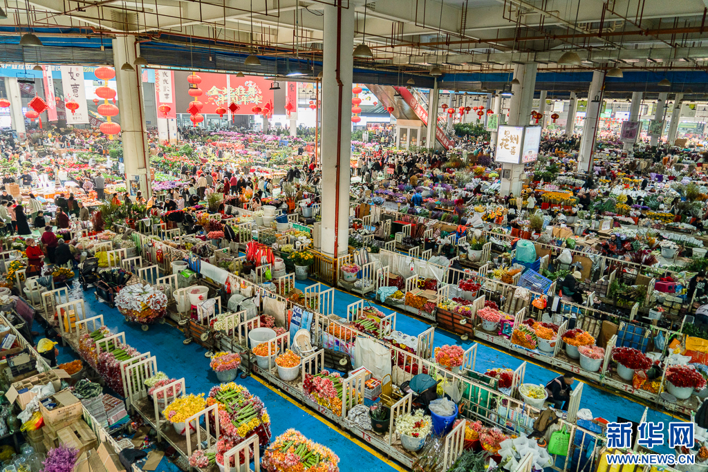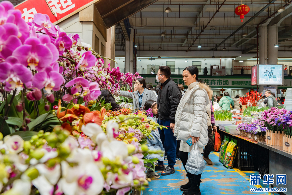 春節臨近,鮮花市場需求量迎來增長。在昆明斗南花卉市場,人頭攢動,熱鬧非凡。各式各樣的鮮花爭奇斗艷,顧客穿梭其間,精心挑選著心儀的花卉,準備為家中增添一抹節日的喜慶。(鄭益)