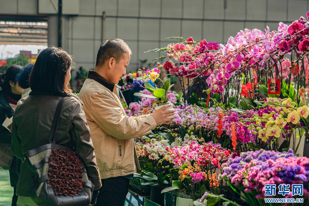 選購花卉的顧客(1月19日攝)。新華網發(鄭益 攝)