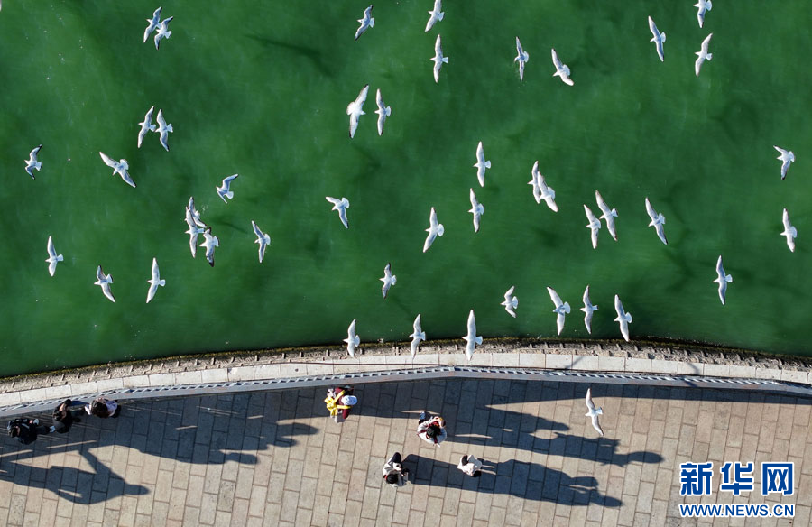 人鷗同樂(2月2日攝)。新華網發(王正鵬 攝)