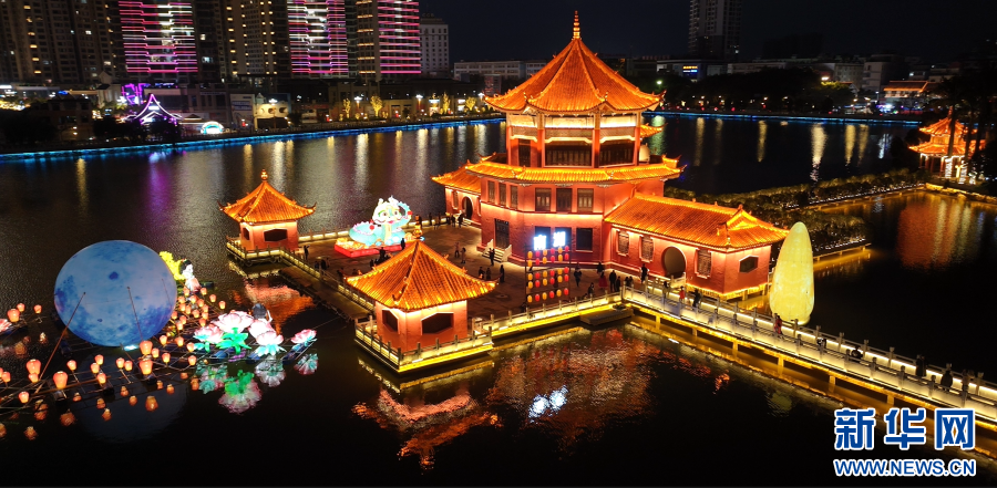春節期間,云南省紅河哈尼族彝族自治州蒙自市南湖公園舉行燈展活動,流光溢彩的燈組點綴在南湖多個角落,為市民和游客呈現出一場充滿年味與歡樂的視覺盛宴。