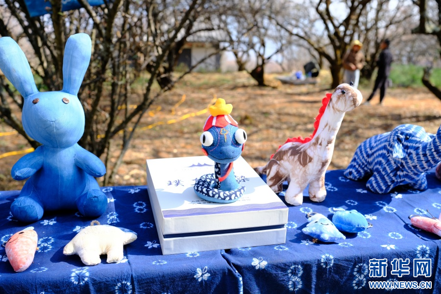 活動現場展示的白族扎染小工藝品(2月7日攝)。新華網發(吳丹 攝)