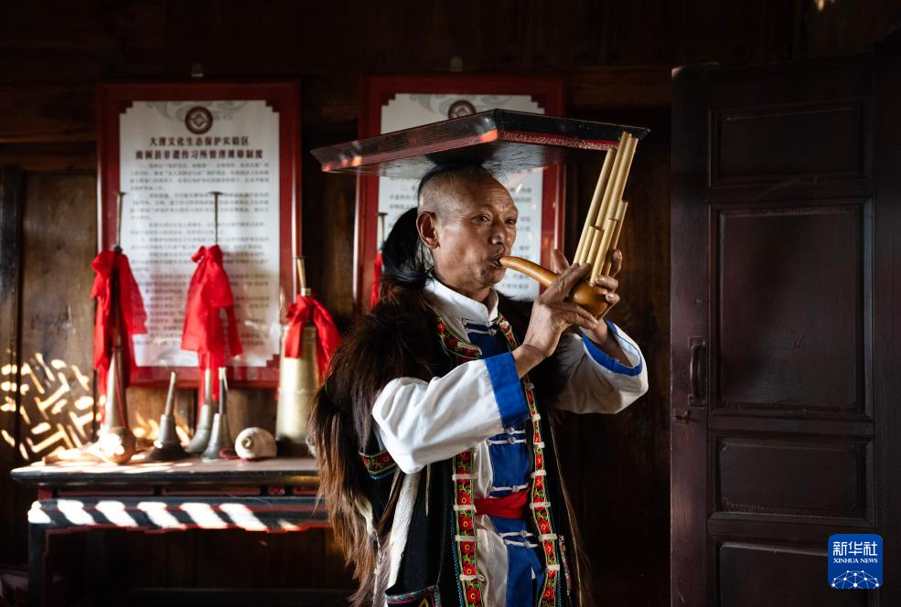 2月7日,南澗彝族跳菜國家級非物質文化遺產代表性傳承人魯朝金在非遺傳習所內演示跳菜技藝。新華社記者 陳欣波 攝