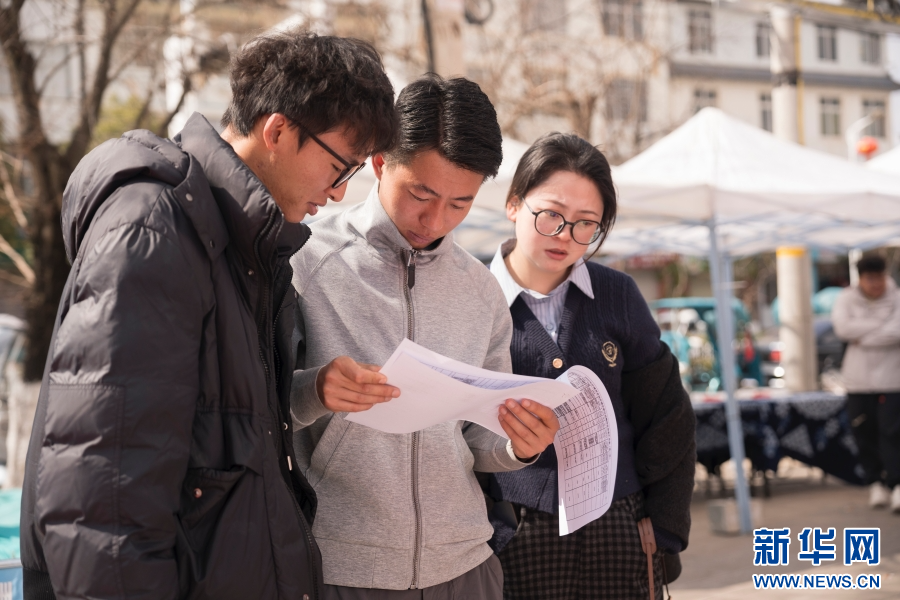 求職者在云南省洱源縣現場招聘會上了解崗位信息(2月9日攝)。新華網發(羅新才 攝)