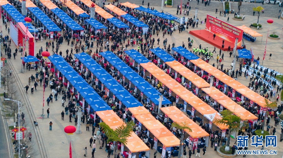 航拍云南省文山市“春風行動”專場招聘會(2月7日攝)。新華網發(熊平祥 攝)