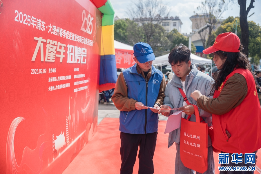 求職者在云南省蒙自市2025年“春風行動”專場招聘會上了解崗位信息(2月7日攝)。新華網發(薛瑩瑩 攝)