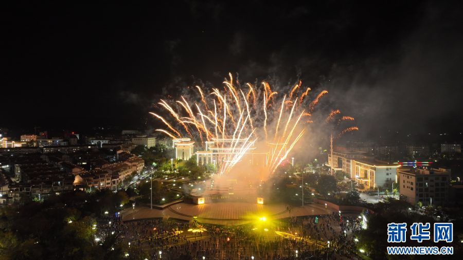 篝火煙花映夜空 云南永仁萬人打跳慶元宵