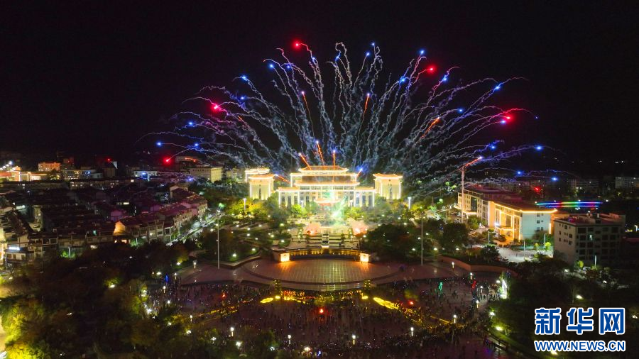 絢爛煙花綻放夜空(2月11日攝)。新華網發(永仁縣融媒體中心供圖)