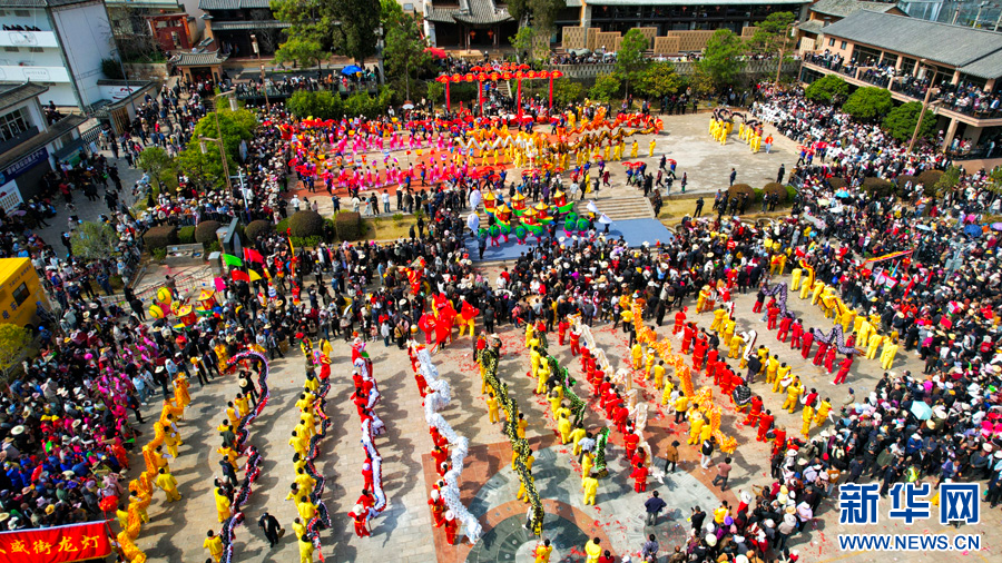 2月12日,云南省彌渡縣迎來了密祉元宵燈會,群眾齊聚一堂,耍龍舞獅鬧花燈。(楊文虹 鞠強 李加勇)