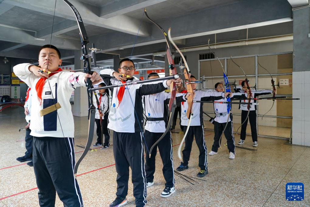 2月28日,昆明市云南大學附屬中學學生在校園里練習射箭。新華社記者 陳欣波 攝