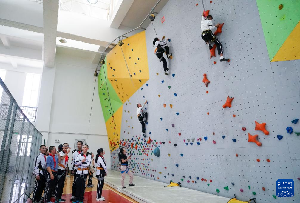 2月28日,昆明市云南大學附屬中學學生在校園里練習攀巖。新華社記者 陳欣波 攝
