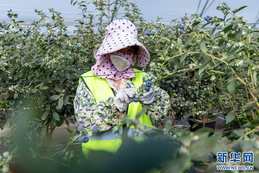 農戶正在采摘藍莓(2月27日攝)。新華網發(李浩 攝)