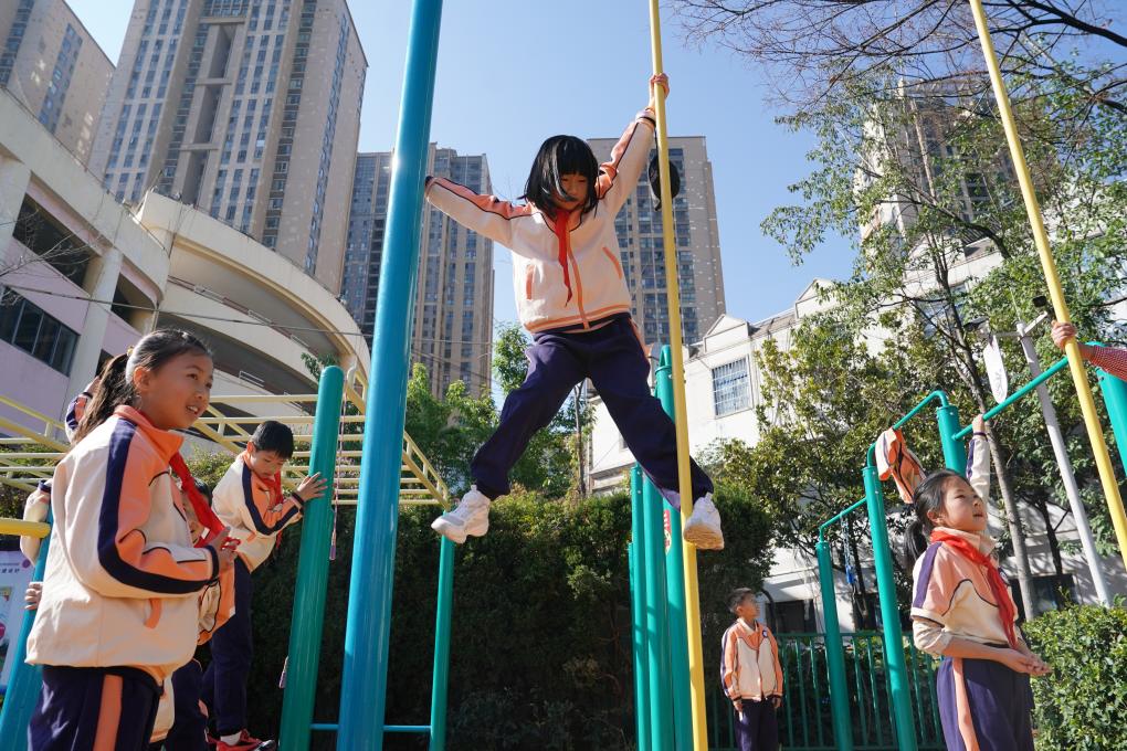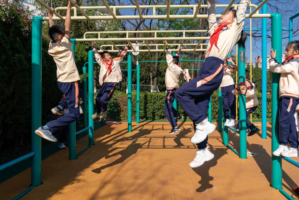 昆明市金康園小學的“杠場”很快“掛滿”學生