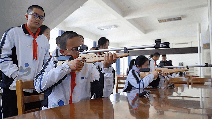 在大教室有射擊的、攀巖的