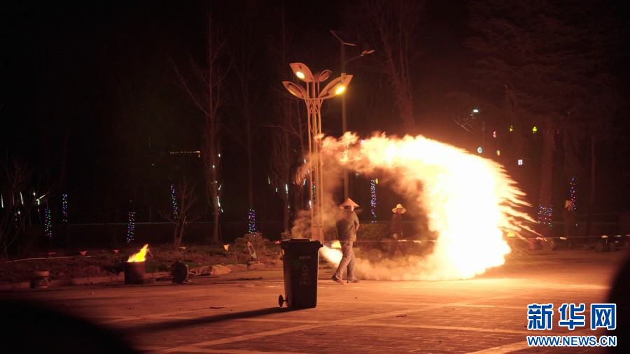 “打鐵花”民俗表演(視頻截圖)。新華網發(魯甸縣融媒體中心供圖)