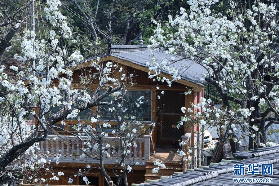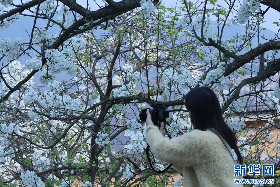 梨花盛放的哨沖(3月15日 攝)。新華網發(楊國芳 攝)