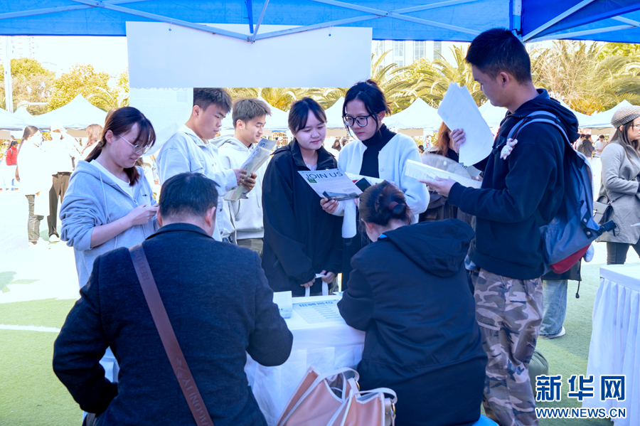 求職學生與用人單位溝通交流(3月15日攝)。新華網發(劉起 攝)
