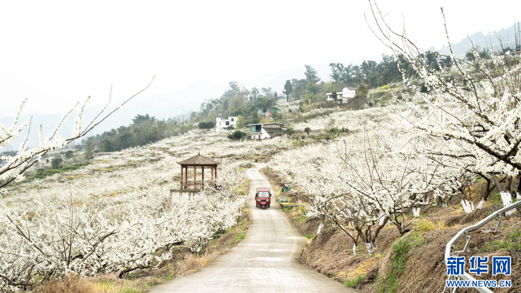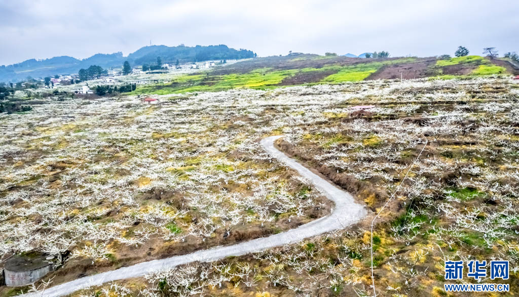 萬畝李花迎春綻放(3月8日攝)。新華網發(曾三東 攝)