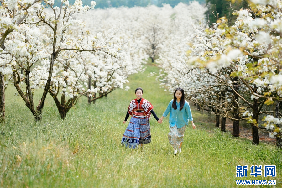 春暖花開,昆明市尋甸回族彝族自治縣梨花、櫻花競相綻放,吸引游客、市民前來賞花拍照,記錄下這份春日美好。新華網發(徐俊 攝)