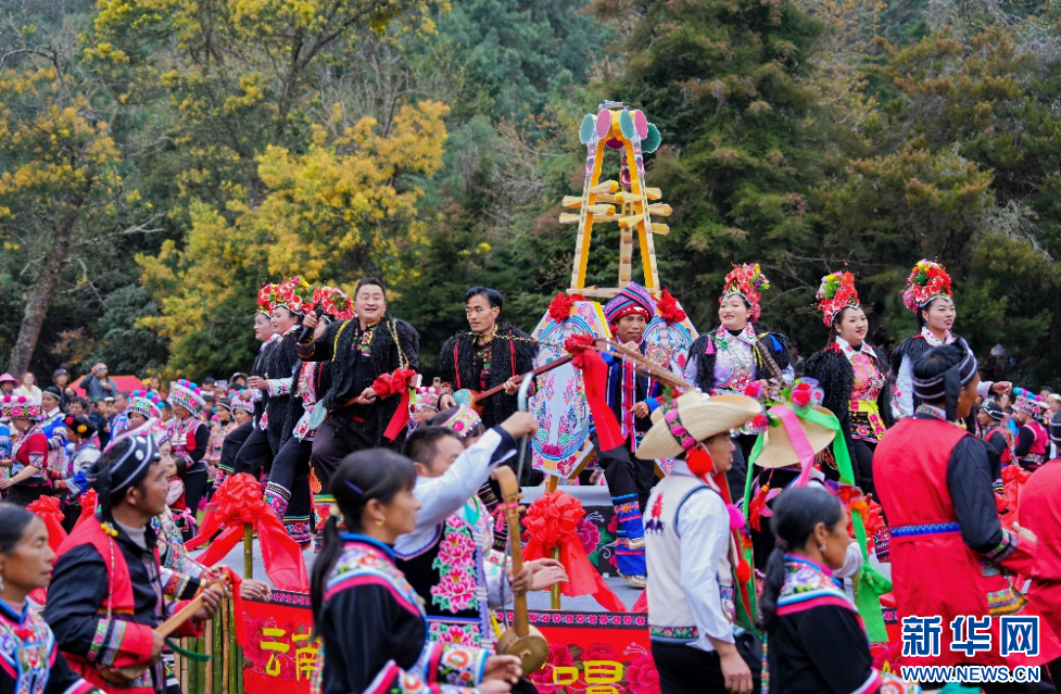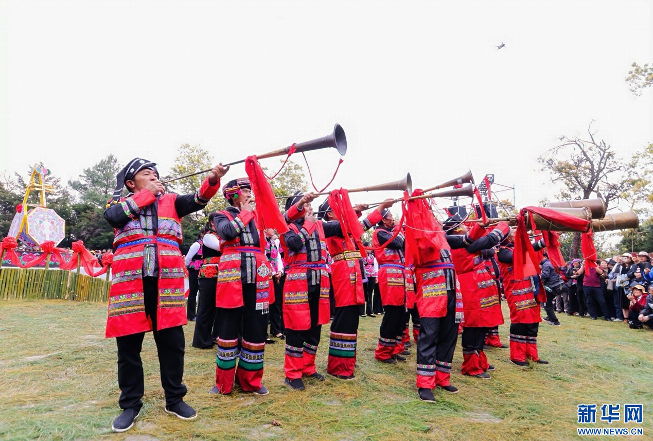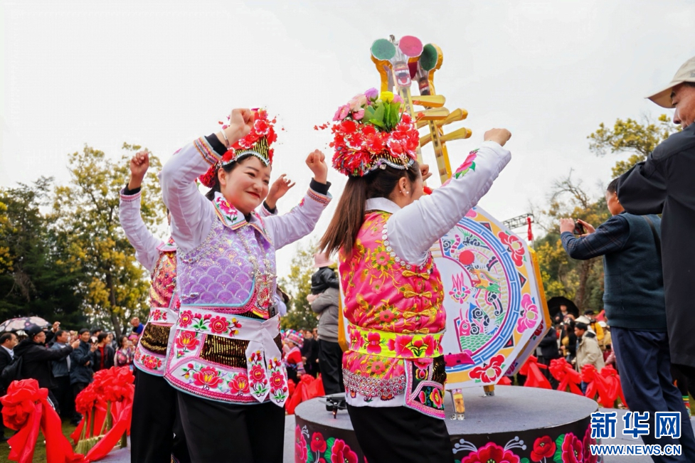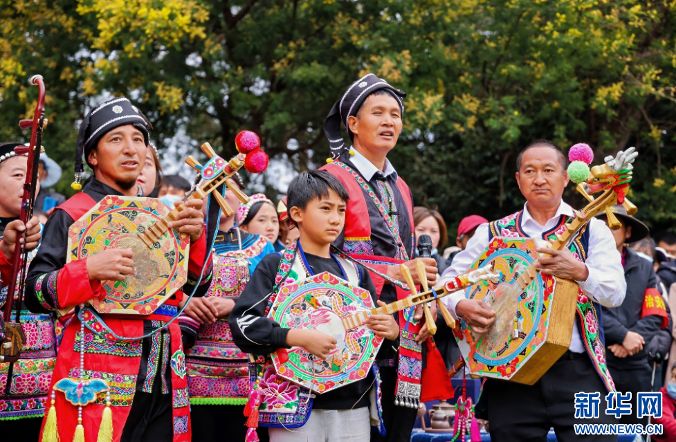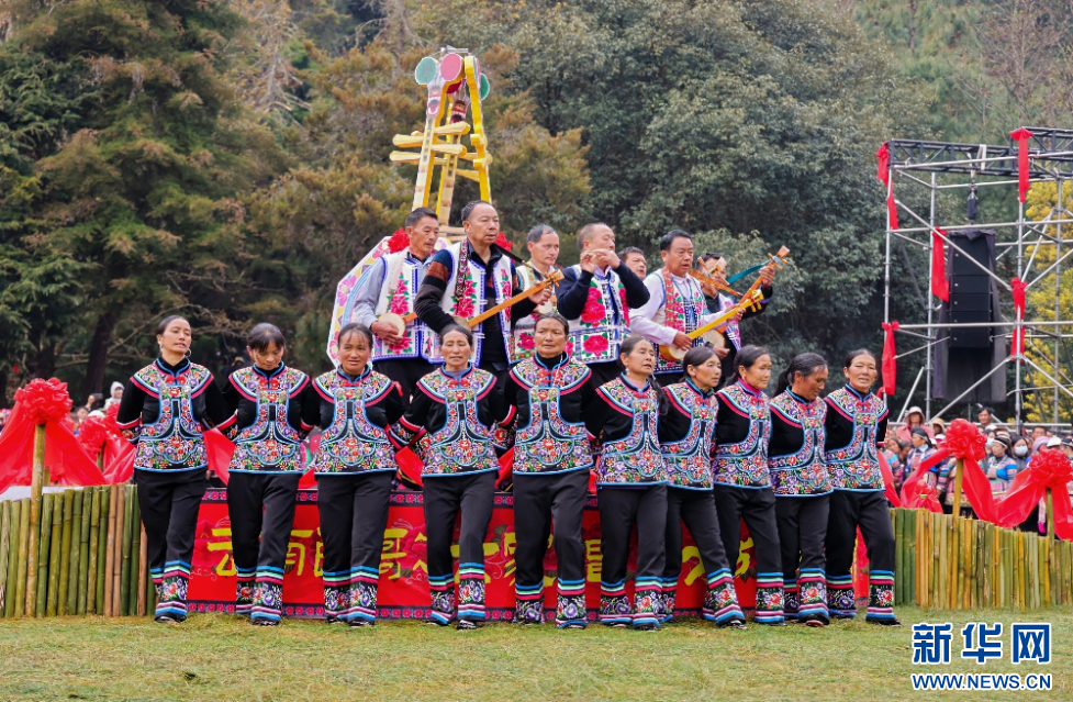 云南大理祥云天峰山歌會現場,群眾吹奏樂器(3月14日攝)。新華網發(供圖)