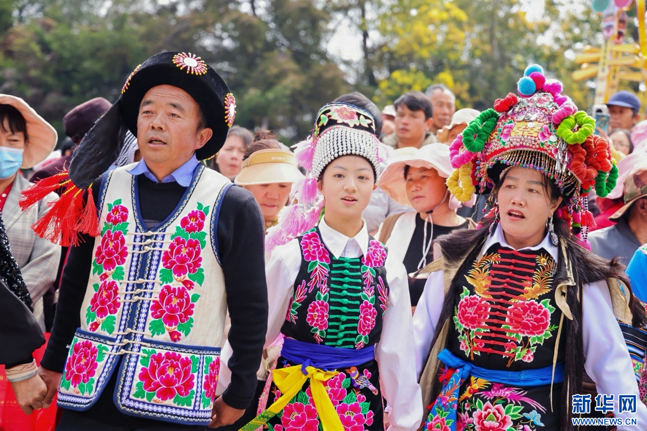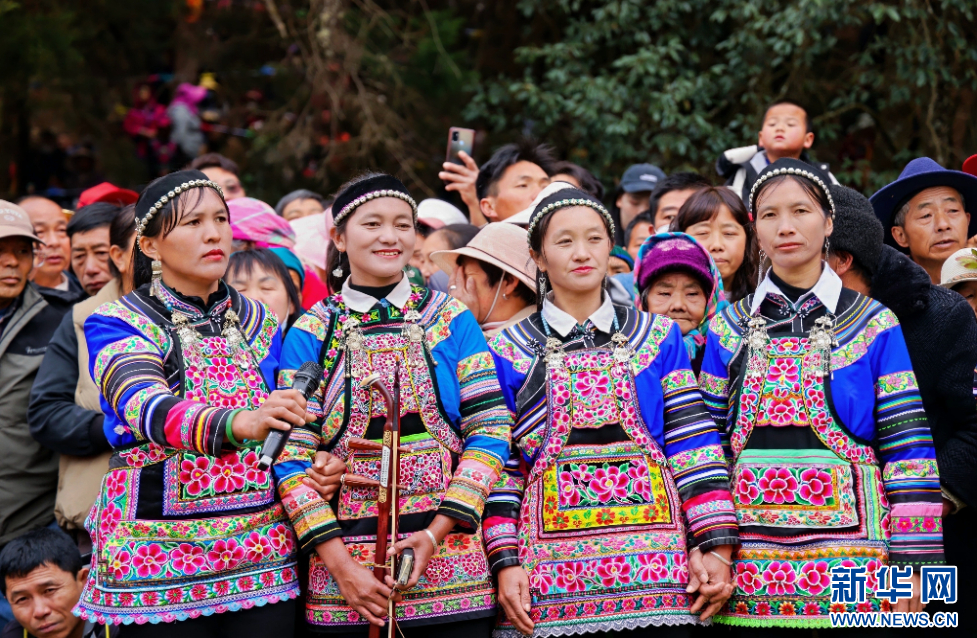 云南大理祥云天峰山歌會現場,群眾身著絢麗的民族服飾(3月14日攝)。新華網發(供圖)