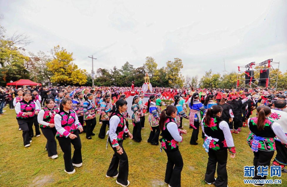 云南大理祥云天峰山歌會現場,群眾載歌載舞(3月14日攝)。新華網發(供圖)