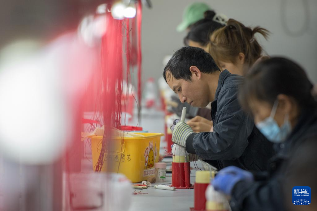 3月26日,工人在怒江州最大的易地扶貧搬遷安置點和諧社區棒球工廠制作棒球。