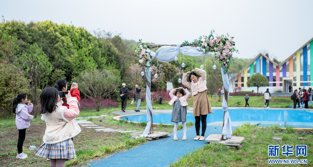 游客正在峰頂山旅游景點拍照打卡(4月12日攝)。新華網發(曾三東 攝)