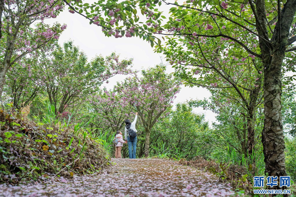 近日,云南省昭通市綏江縣會儀鎮峰頂山鄉村旅游示范點櫻花綻放,吸引眾多游客前來踏青賞花,盡享春日美景。