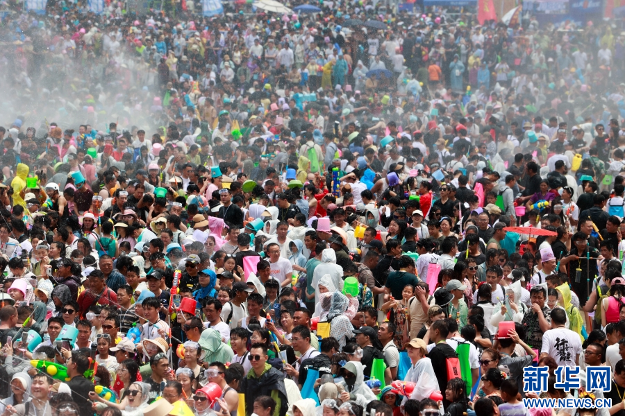 2025年德宏芒市潑水狂歡節上人們互相潑灑祝福(4月12日攝)。新華網發(劉云 攝)