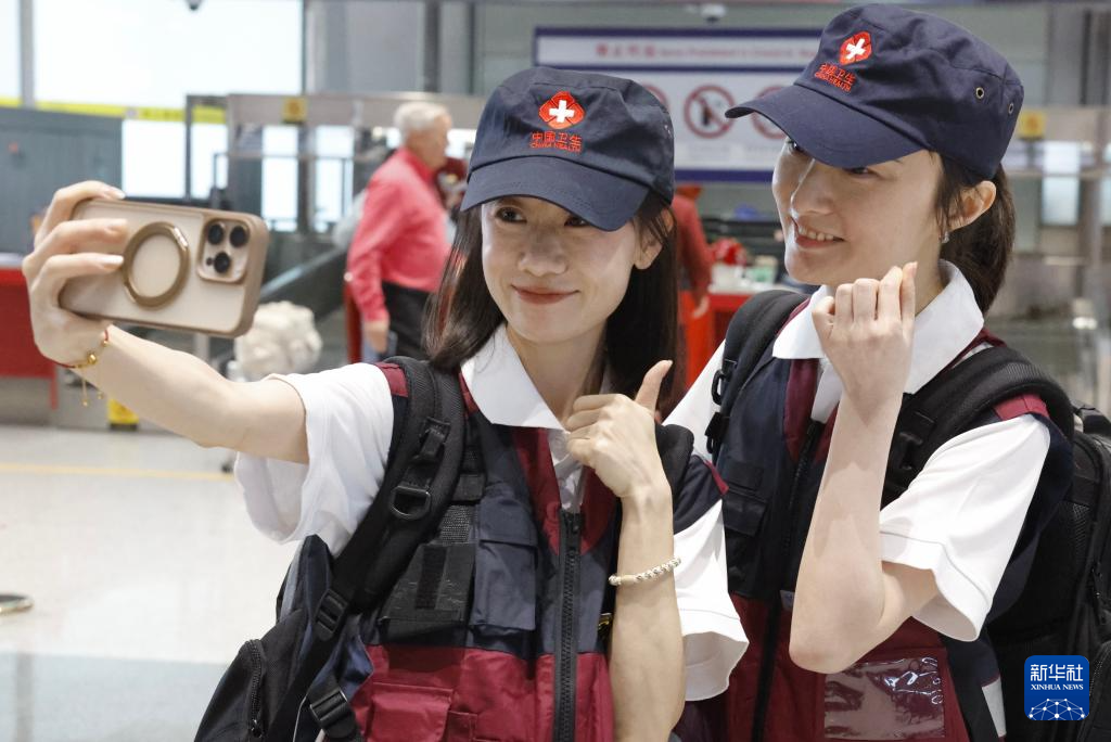 4月19日,12名從北京出發的隊員從北京首都機場離京。新華社記者 張玉薇 攝