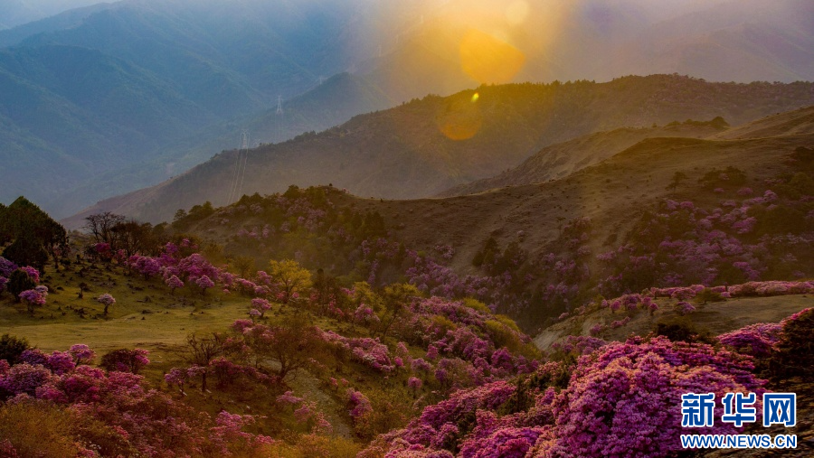 夕陽下的杜鵑花(4月20日攝)。新華網發(段相如 攝)