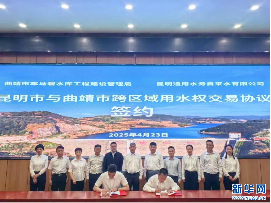 新華網昆明4月26日電 近日,曲靖市車馬碧水庫工程建設管理局與昆明通用水務自來水有限公司在昆明簽訂用水權交易協議,交易金額為125萬元,交易水量為2500萬立方米,交易水量可沿自然河道自流至德澤水庫,通過牛欄江-滇池補水工程調往昆明。