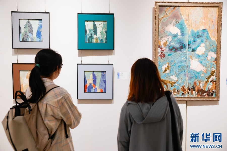 觀賞者正在欣賞瓷畫作品(4月30日攝)。新華網發(劉云 攝)