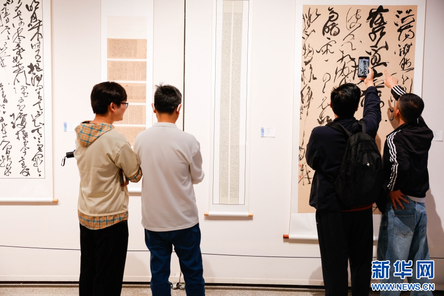 觀賞者正在欣賞書法作品(4月30日攝)。新華網發(劉云 攝)