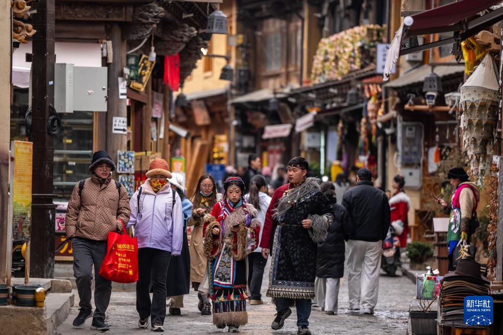 2025年3月7日,游客在獨克宗古城游覽。新華社記者 胡超 攝