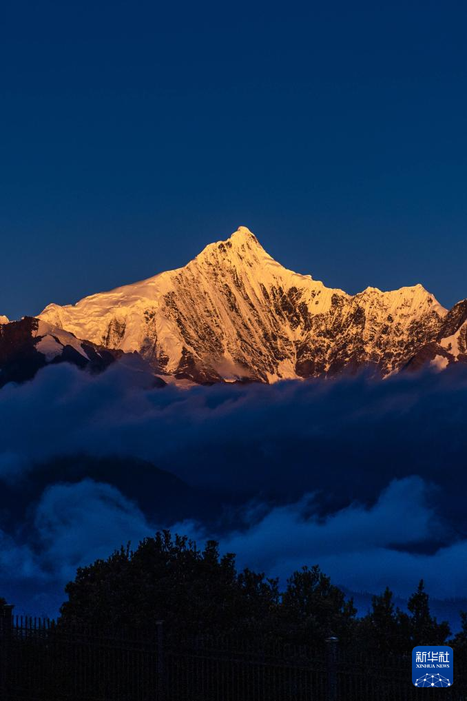 這是2021年9月15日拍攝的梅里雪山“日照金山”美景。新華社記者 胡超 攝